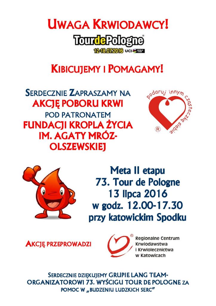 Akcja krwiodawstwa podczas Tour de Pologne | Fundacja Kropla Życia im. Agaty Mróz-Olszewskiej